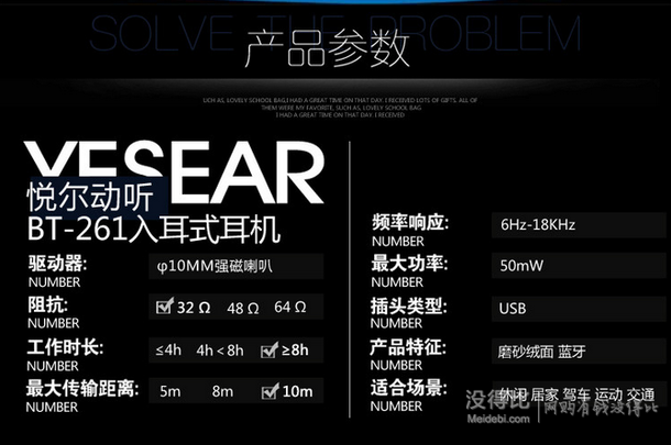 此款為YESEAR耳掛式V3.0藍牙耳機,采用雙聲道,傳輸范圍10米,重量50克。輕合金加固耳掛支架,更加穩(wěn)固,高效防汗功能,非常適合運動跑步。