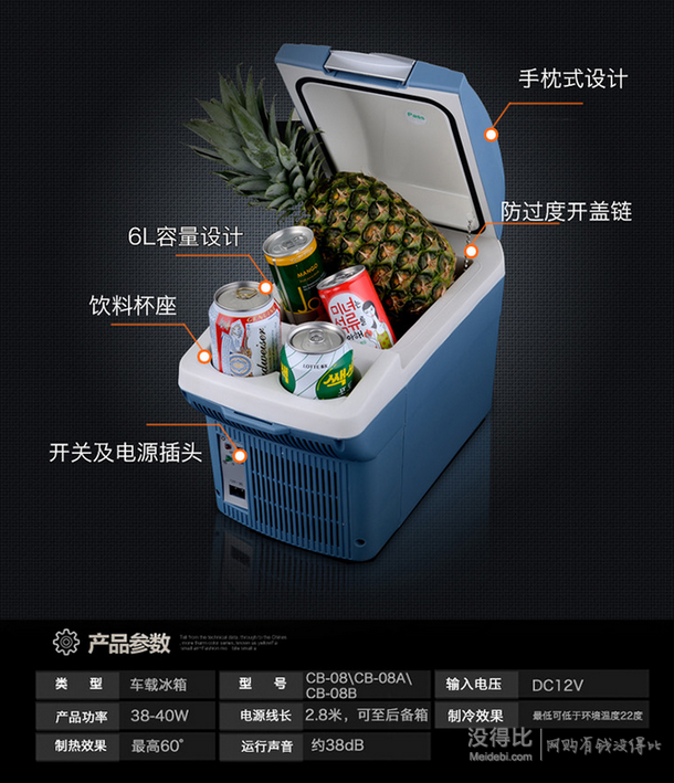 婷微車載冷熱箱CB-08B,具備獨特的保溫功能,3—5小時保持箱內(nèi)原有的溫度不變,12小時內(nèi)箱內(nèi)溫度僅上升5—6度。這款車載冷熱箱,設(shè)有杯座、肩帶、扶手箱;6L的容量體積小便于攜帶;可作為冷暖箱、化妝箱、茶葉箱使用,一箱多用。能夠存放7瓶農(nóng)夫山泉或者9聽可樂。普通12V點煙器即可供電。尺寸為380*220*280mm。