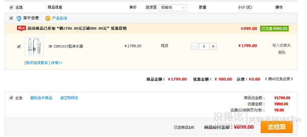 蘇寧售價1799元,下單立減900,實付899元,同款亞馬遜1509.18元。