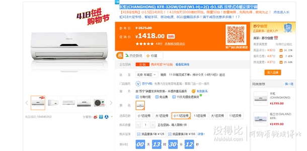 長(zhǎng)虹(CHANGHONG) KFR-32GW/DHF(W1-H)+2白 小1.5匹 掛壁式冷暖定速空調(diào) 目前報(bào)價(jià)1418元,實(shí)屬歷史低價(jià),比之前推薦少了181元。