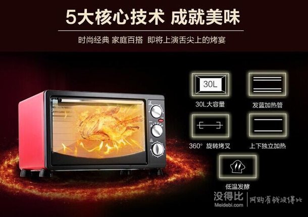 Joyoung九陽KX-30WJ05是一款黃金容量30L的多功能烘焙燒烤箱,帶旋轉(zhuǎn)烤叉360°,上下均勻加熱燒烤,30L家用大容量,9大烹飪功能選擇,溫度自由調(diào)節(jié),60分鐘定時控制,360度旋轉(zhuǎn)烤叉,烘烤更均勻。