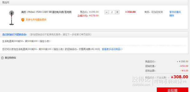 易迅網(wǎng)今日售價199元,下單立減20元,另外湊單2件還可以參加滿300減50的活動,折合154元/件,京東商城199元,其他渠道售價都在218元以上。