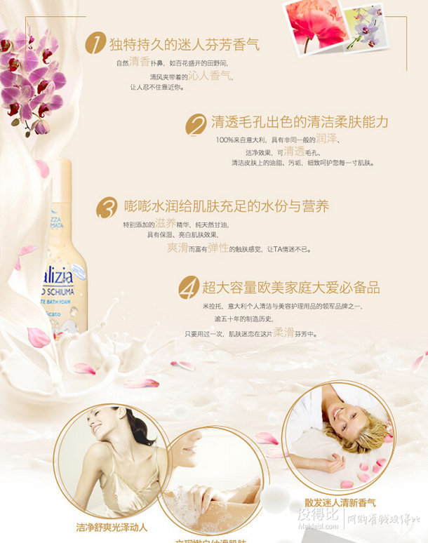 Mirato(米拉托)是意大利知名個人衛(wèi)生用品品牌,瑪莉吉亞(Malizia )沐浴露(柔滑芬芳型)1000ml,100%來自意大利具有非同一般的潤澤、潔凈效果,可清透毛孔、細(xì)致呵護(hù)您每一寸肌膚。清透柔和潔膚,賦予源源不斷的水份和營養(yǎng),超大容量帶來倍兒滋潤的絲滑感受。