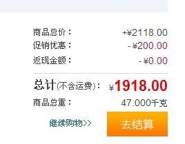 易迅網(wǎng)華北站早市價2118元,下單立減200元,實付1918元包郵,跟其它B2C渠道相比有300元左右的優(yōu)惠。