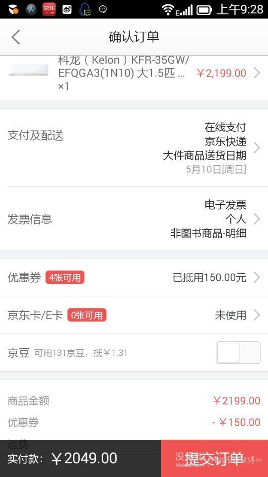 目前京東商城售價2199元,本身就是好價,還可使用會員禮包家電滿2000-150元券(手機(jī)端結(jié)算),實付2049元包郵,性價比很高的,同款易迅最低2199元。