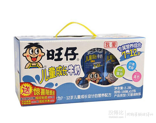 旺旺 旺仔兒童牛奶(7-12歲利樂裝禮盒)原味190ml,專為7-12歲兒童成長設(shè)計(jì)的配方,規(guī)格為190ml*12包。