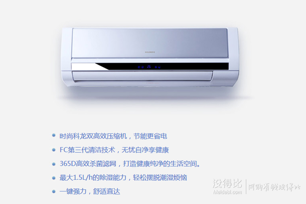 Kelon 科龍 KFR-32GW/UG-N3 1.5匹 節(jié)能明星系列壁掛式 家用冷暖空調(diào),采用雙高效壓縮機,知冷知熱快,實現(xiàn)雙重高效,同時壽命長達15年,實現(xiàn)1分鐘涼爽、3分鐘暖房,365D高效殺菌濾網(wǎng),7層過濾,可除臭、殺菌、消毒、保濕、凈化空氣,F(xiàn)C第三代自動清潔技術(shù),智能清潔一步到位,創(chuàng)新式自然風除濕技術(shù),最大1.5L/h的除濕能力,輕松擺脫潮濕煩惱。定頻國家3級能效。