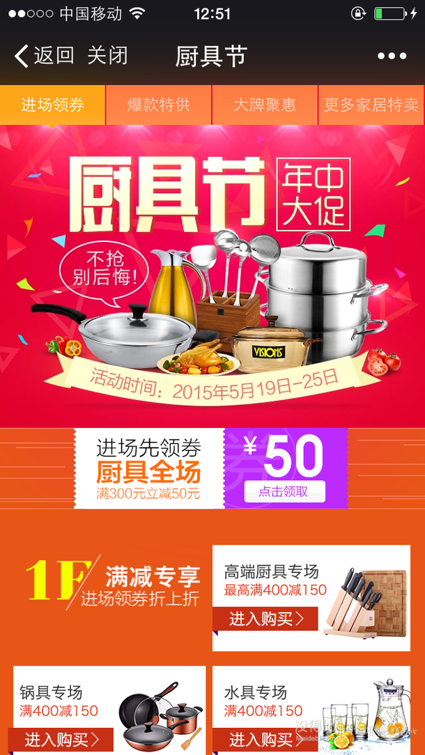 新一輪的廚具節(jié)開始,這次的活動(dòng)是滿400減150,另外可以在微信右上角“廚具大促”領(lǐng)取滿300減50券,做到滿450減200的節(jié)奏還是不錯(cuò)的!PS:今天的券已經(jīng)搶光了!