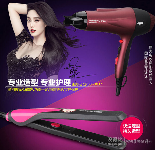 康夫 KF3037 吹風(fēng)機(jī),靜音設(shè)計(jì),采用57度恒溫技術(shù),更好的保護(hù)頭發(fā),1600W功率,6檔吹風(fēng)模式,防過(guò)熱斷電保護(hù),使用更安全,后蓋可拆卸,方便清理,電源線長(zhǎng)1.8米。KF508 迷你直發(fā)夾外殼采用耐高溫材質(zhì),速熱碳鋼發(fā)熱板可實(shí)現(xiàn)30秒快速加熱,機(jī)身迷你小巧,方便攜帶。
