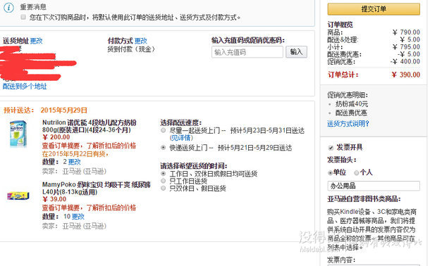 結(jié)算的時(shí)候輸入優(yōu)惠碼:“9EEO46E6IS”,實(shí)付390元包郵算下來(lái)奶粉100元/罐,200元買400片L碼的尿不濕,也是相當(dāng)給力的了!
