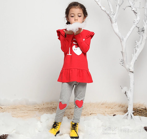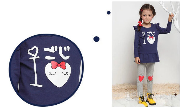 這款共三個顏色可選,型號齊全,長款T恤+打底褲套裝,上衣100%棉,下裝95%棉+5%氨綸。挺好看的,麻麻們可以去看看,畢竟比某寶的雜牌還是要好很多的。