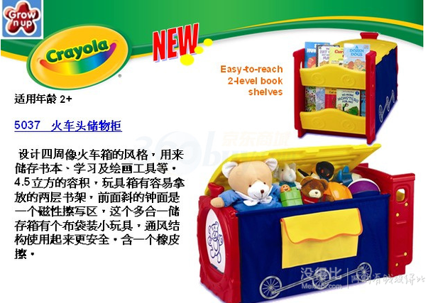 Crayola繪兒樂是美國著名的兒童產(chǎn)品品牌,這款火車頭儲(chǔ)物柜含有易取放的兩層書架,含有一個(gè)磁性擦寫區(qū),規(guī)格:100*46*53cm,對于孩子來說容積充足。