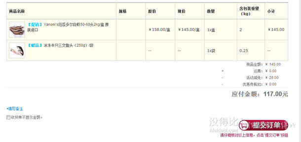Vanoni‘s厄瓜多爾白蝦50-60頭2kg/盒 目前售價(jià)145元,下單改價(jià)為117元,另外再贈(zèng)送 冰凍半只三文魚頭(250g)/袋,折合不到30元/斤的白蝦,還免費(fèi)得到了三文魚頭,限上??少徺I。