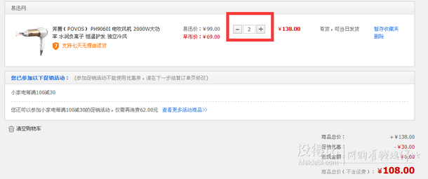 易迅網(wǎng)目前早市價(jià)69元包郵,且可參加每滿100-30活動(dòng),直接買2件,滿減后54元到手,同款京東、國(guó)美89元在售。