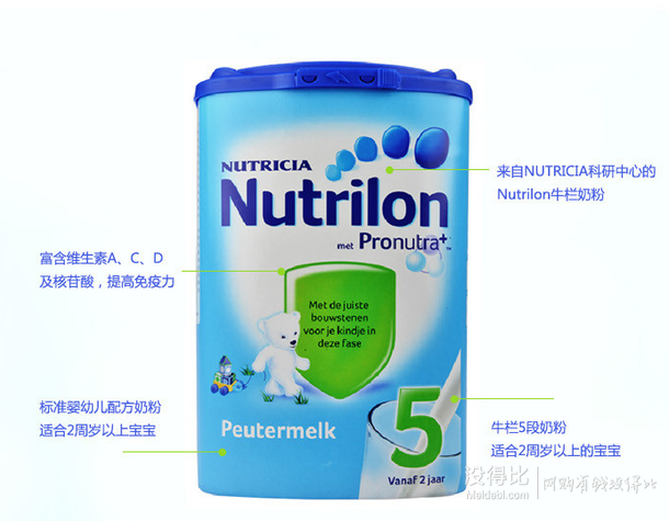 諾優(yōu)能NUTRILON是來自荷蘭的百年品牌;這款5段的嬰幼兒奶粉,適合2歲以上的小朋友,奶粉含有豐富的維生素和營養(yǎng)元素,可提升寶寶的免疫力,規(guī)格800g裝。