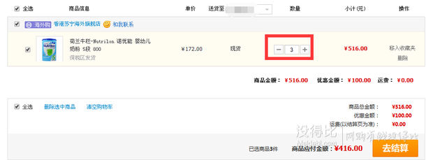 目前再次降價到172元,依舊可參加滿400減100活動,買3罐滿減后實際支付416元包郵,合138.7元/罐。