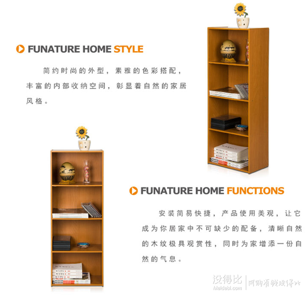 慧樂(lè)家L40四層書(shū)柜外形時(shí)尚簡(jiǎn)約,櫻桃木色素雅;采用刨花板 貼紙材質(zhì),持久耐用,開(kāi)放式單元格設(shè)計(jì),可收納書(shū)本雜志,方便拿取不雜亂,適用于客廳、臥室、書(shū)房、辦公室等場(chǎng)所、裝卸簡(jiǎn)便、尺寸40*23.8*106cm(長(zhǎng)x寬x高)。