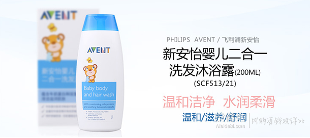 新安怡嬰兒洗護系列,針對嬰兒皮膚薄、易損害的等點,全系列無香精、無酒精,溫和無皂劑的洗發(fā)沐浴二合一可有效清潔、滋潤,使寶貝頭發(fā)、頭皮、肌膚潔凈柔滑;親膚質(zhì)地,低敏配方,不破壞寶貝皮膚水脂膜。溫和無淚配方,適合敏感皮膚,規(guī)格200ml。