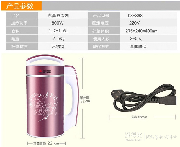 志高豆?jié){機產(chǎn)品,這款是全鋼無刀網(wǎng)配置款,簡單易清洗。帶有六檔研磨功能,可以制作豆?jié){、米糊和果汁等,1.5升左右的容量,適合3~5人使用,功率800W。