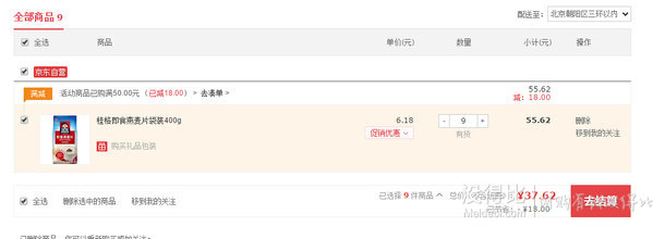 京東目前報(bào)價(jià)6.18元,可同時(shí)參加滿50減18活動(dòng),拼單買9袋,滿減后實(shí)際支付37.62元,合4.18元/袋,是近期好價(jià),建議辦公室拼單入手,可作為早餐飲品。