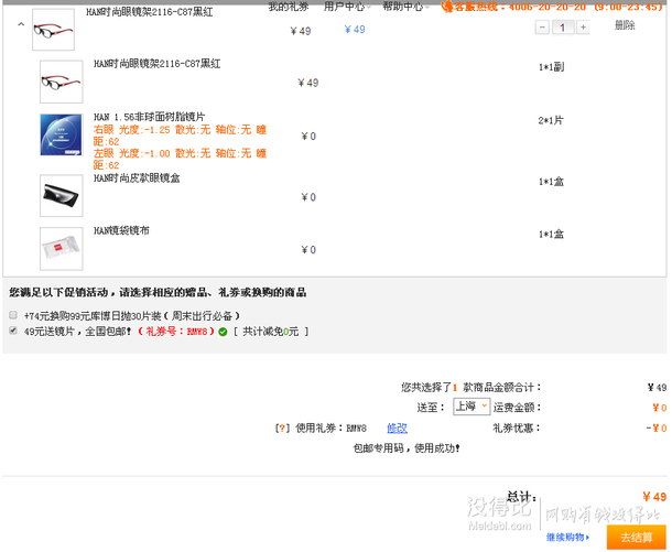 可得眼鏡網(wǎng)這款漢代2116系列有亮黑、暗黑、黑紅3種顏色可以選擇,男女通用款,鏡架寬143mm,臉大的男生也不用煩惱鏡架太窄的問題。目前售價(jià)49元,加入購物車輸入RMW8可免運(yùn)費(fèi),再送1.556非球面樹脂鏡片(0-600度)一副,免加工費(fèi),這個(gè)價(jià)作為備用也不錯(cuò)。