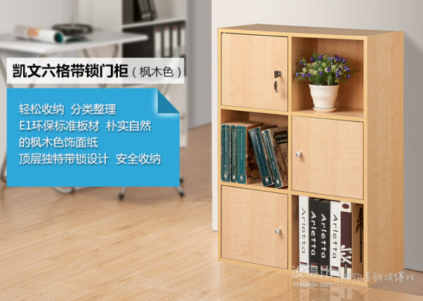 好事達(dá) 凱文六格帶鎖門(mén)柜680-6-1606,錯(cuò)落有致的開(kāi)放式與封閉式相結(jié)合的格子柜,方便儲(chǔ)存隱私與非隱私物品。E1級(jí)環(huán)保板材,拉門(mén)是帶鎖設(shè)計(jì),銀色錐形拉手觸感良好,以及吸附力強(qiáng)的雙層磁片部件,外形美觀自然。材質(zhì):均質(zhì)刨花板。