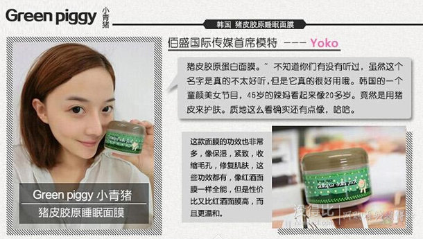 elizavecca green piggy 純天然豬皮膠原緊致面膜,是繼蝸牛霜之后泡菜國(guó)新神器,也是目前最熱門的豬皮面膜。源于那位45歲卻嫩過(guò)大學(xué)生的韓國(guó)辣媽馬勝智,曾參加韓國(guó)SBS“娃娃臉選拔賽”而一舉成名.