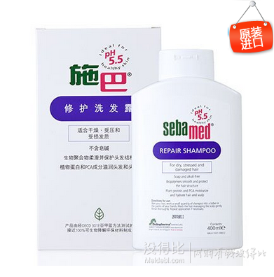 Sebamed施巴 修護洗發(fā)露400ml,深層滋養(yǎng),源頭修護;無皂無堿,溫和清潔成分,令燙染干燥發(fā)質(zhì)回復柔軟;恢復頭發(fā)角質(zhì)層平滑;在頭發(fā)形成保護膜,修護干燥脆弱發(fā)干;蘊含絲蛋白補充發(fā)干水分和營養(yǎng),令秀發(fā)柔韌,亮澤豐盈;高度補水鎖水,預防頭膚干燥,促進發(fā)絲潤澤;性質(zhì)特別溫和。