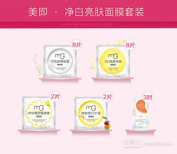 MG美即凈白亮膚特惠裝:深度美白去黃面膜貼20片+眼膜3片。