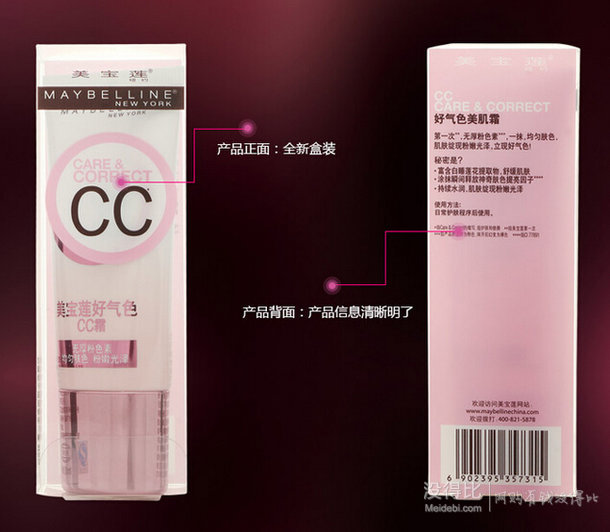 美寶蓮好氣色CC霜套裝組合,含有:cc霜粉色30ml *1, 美寶蓮8效合一舒潔卸妝液8ml*1 , 美寶蓮奇妙凈顏清透卸妝晶露(卸妝潔面2合1)30ml。