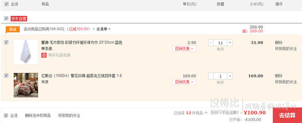 YISIDA億斯達(dá) 繁花似錦 超柔法蘭絨四件套 1.8米床,京東商城售價(jià)169元,歷史低價(jià)了,可以參加自營(yíng)百貨滿199-100的活動(dòng),例如拼單11件方巾,4件套約合84.5元/件,方巾約合1.5元/件。
