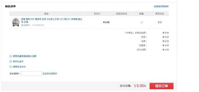 不想買太多東西,又不想浪費(fèi)抽獎得來的小京券,可以用了。兩個5元的小京券,買入后0元包郵